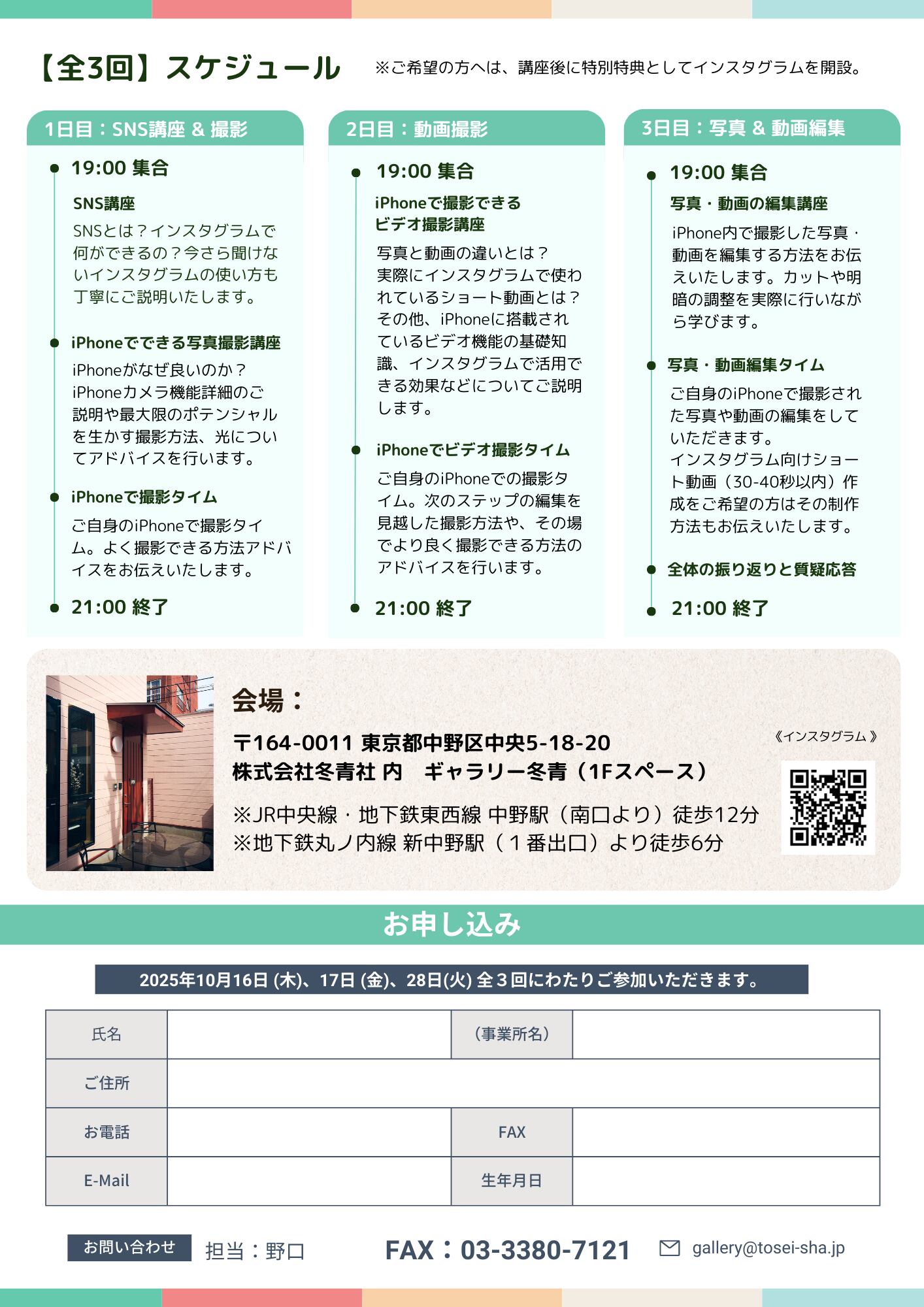 【講座】iPhone 1台のみで完結!? インスタグラム × 写真/動画講座(全3回)